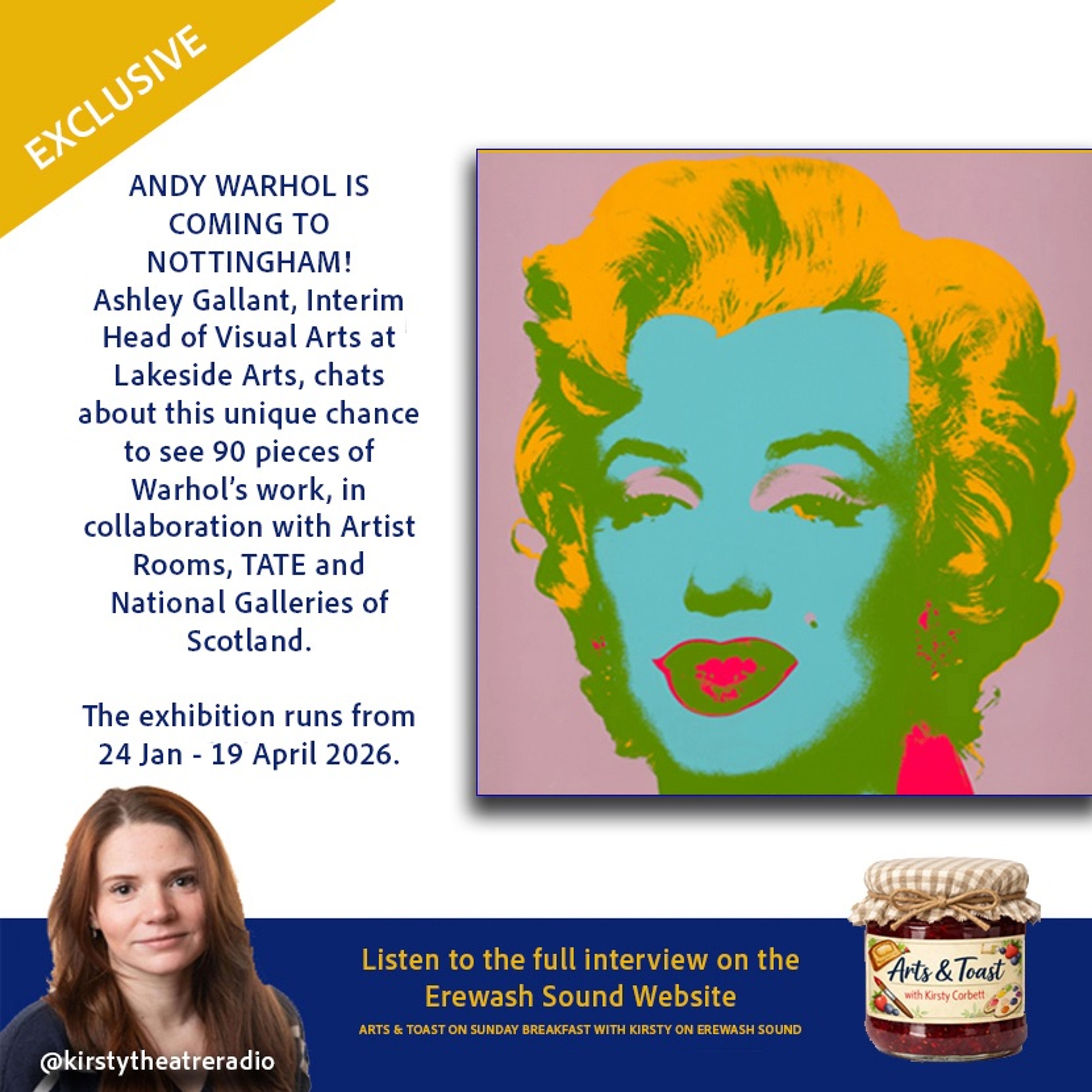 In this exclusive interview, Kirsty interviews the Interim Head of Visual Arts Programme at Lakeside Arts - Ashley Gallant - about how the curating, planning and building of this iconic exhibition is going ahead of its opening on 24 January 2026. Find out about which of Andy Warhols iconic screen prints, drawings and photographs are heading to our doorstep in the East Midlands.