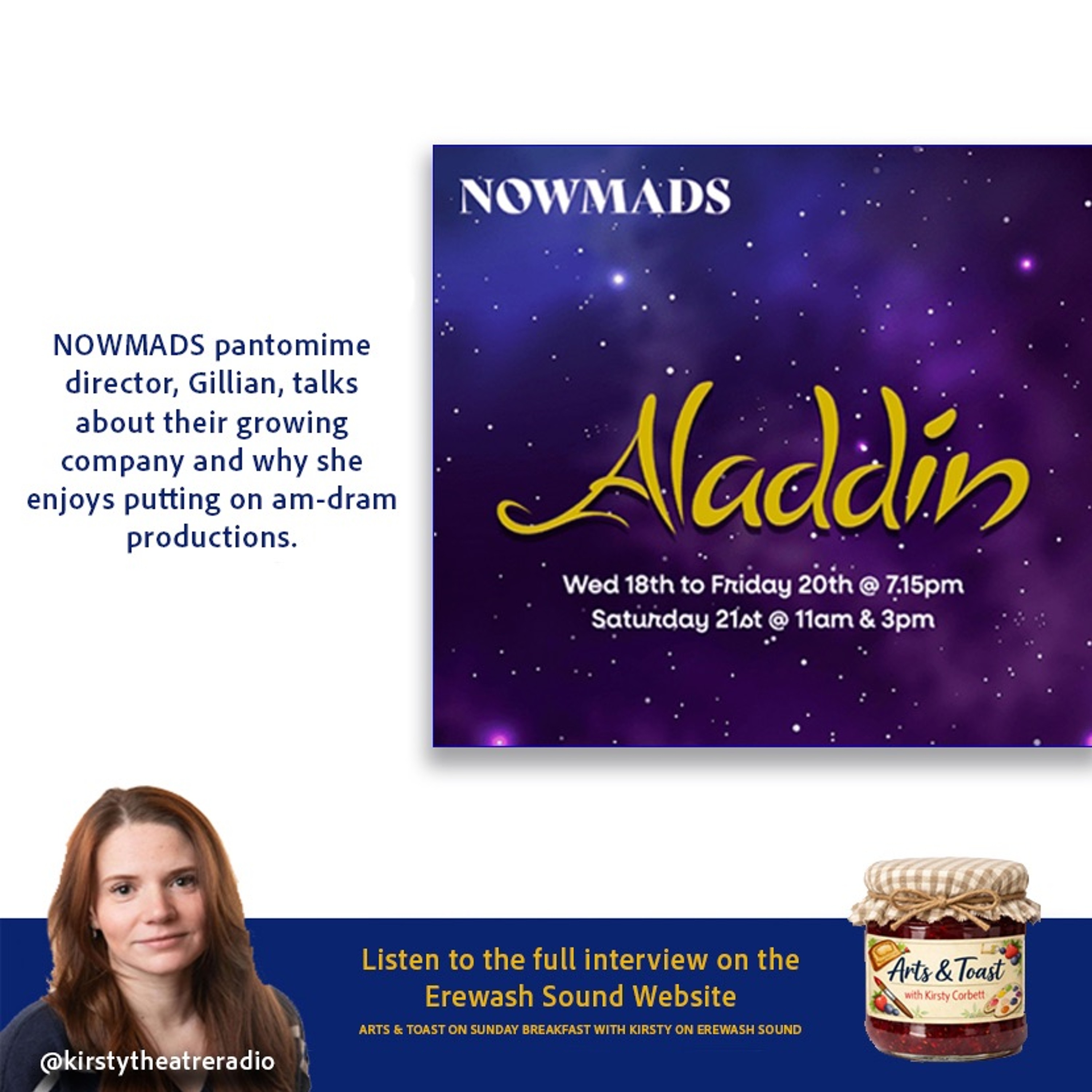 Gillian, who has been a member of NOWMADS for over 40 years, chats about the cost of putting on a quality amateur dramatic production alongside the things to look forward to in this year's pantomime: Aladdin.