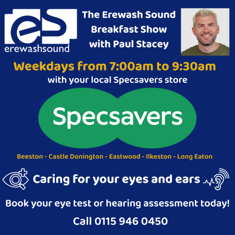 The Erewash Sound Breakfast Show is sponsored by your local Specsavers store!